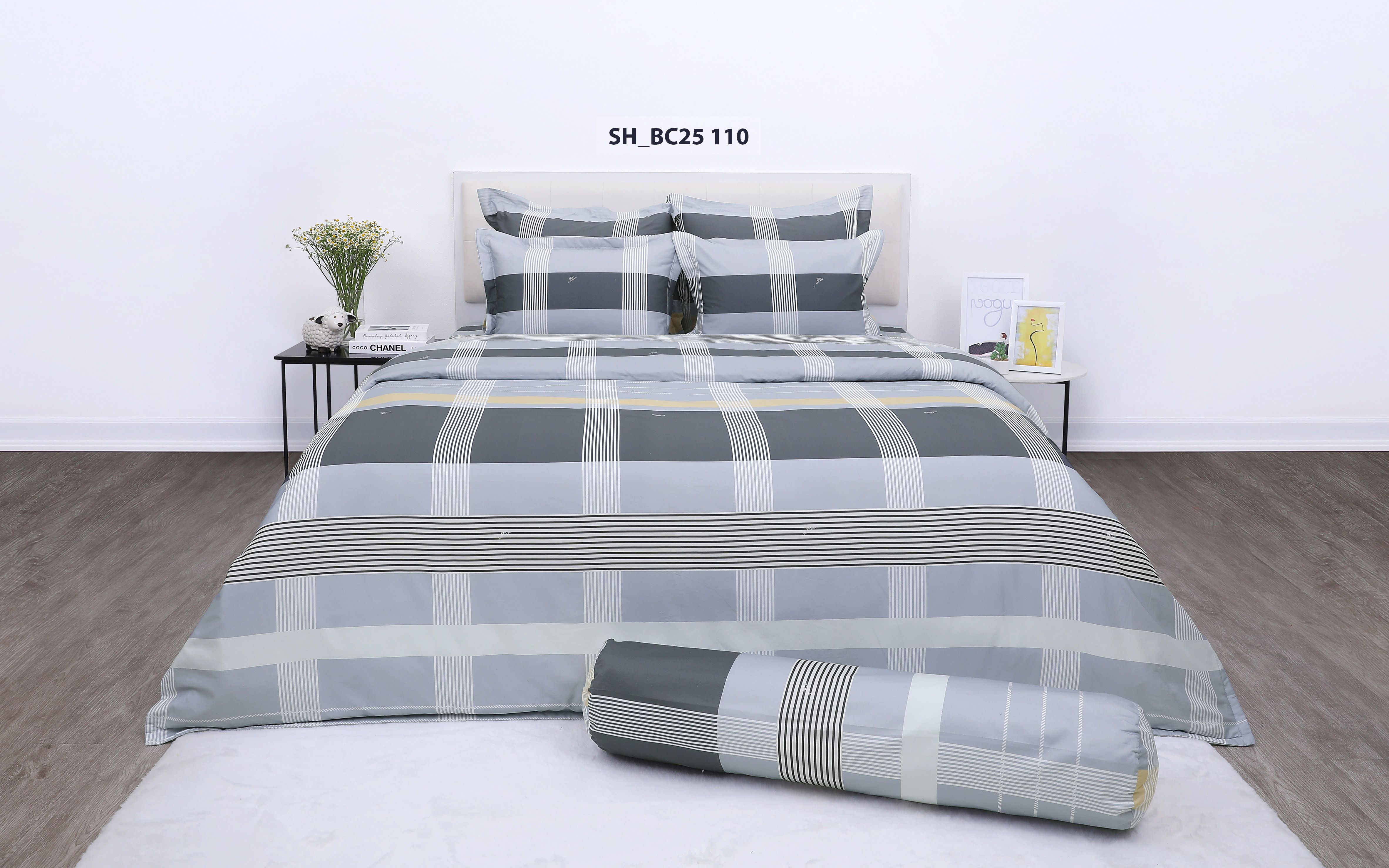 Bộ chăn ga gối BC25110 nổi bật với thiết kế kẻ sọc caro – biểu tượng của sự tối giản nhưng đầy cá tính. Sự kết hợp khéo léo giữa các gam màu trung tính như xám, xanh than cùng điểm nhấn vàng nhạt mang đến tổng thể hài hòa, hiện đại và sang trọng. Đường kẻ dọc – ngang rõ ràng, gọn gàng tạo cảm giác trật tự, sạch sẽ, phù hợp với phong cách sống năng động và tinh gọn. Thiết kế này không chỉ tạo điểm nhấn thẩm mỹ cho không gian mà còn dễ dàng phối hợp với nhiều kiểu nội thất khác nhau, từ tối giản đến hiện đại.