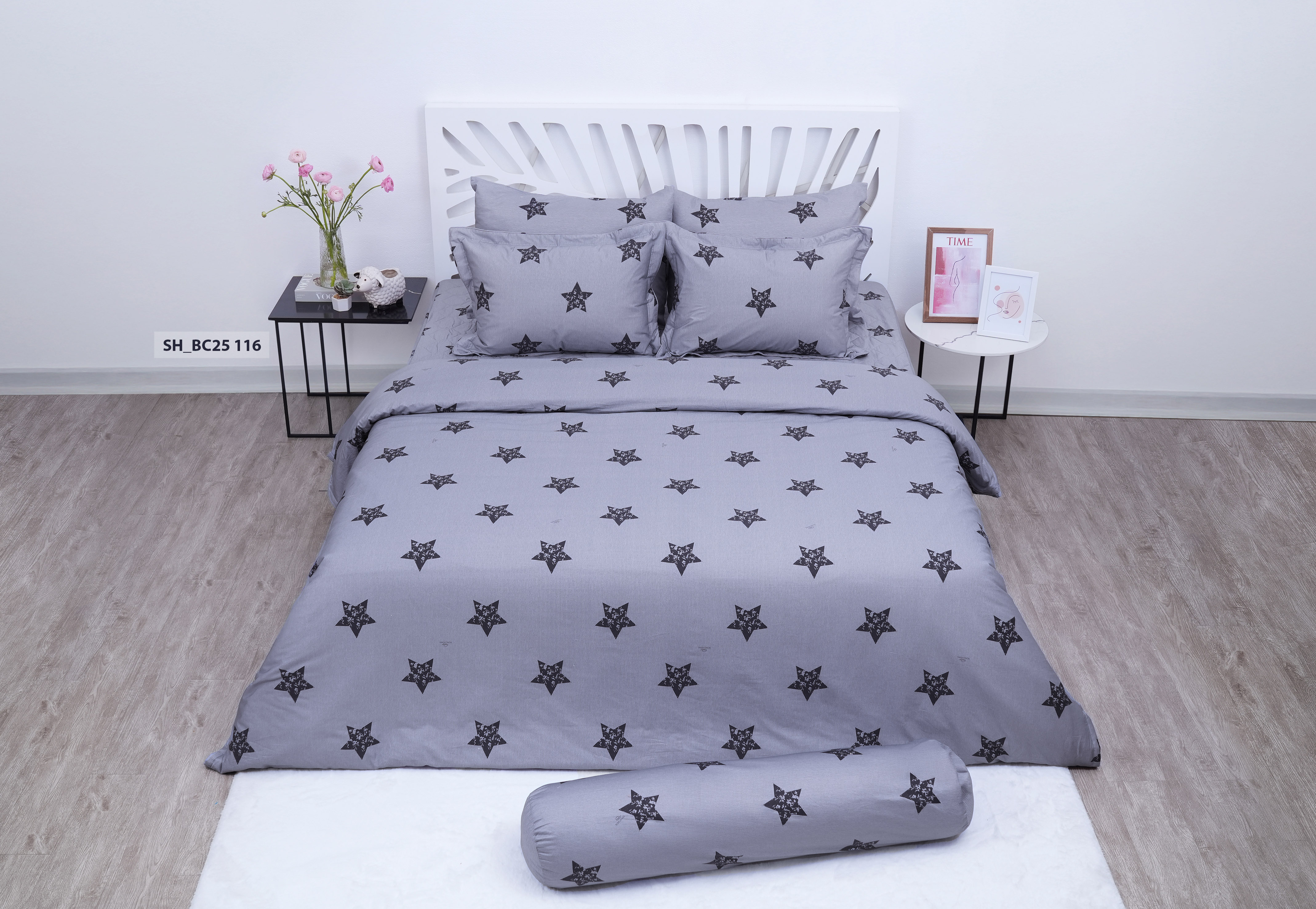 Mang trong mình vẻ đẹp thanh lịch và hiện đại, bộ chăn ga gối BC25116 thu hút với gam xanh tím dịu nhẹ – màu sắc gợi cảm giác bình yên, thư giãn. Họa tiết ngôi sao đen được bố trí khéo léo, tạo điểm nhấn cá tính mà vẫn giữ được sự cân bằng hài hòa trong tổng thể. Mỗi chi tiết thiết kế đều được trau chuốt tỉ mỉ, từ đường may chắc chắn đến sự phối hợp màu sắc đầy tinh tế. Thiết kế phù hợp với nhiều không gian sống, từ phòng ngủ trẻ trung đến không gian tối giản đầy phong cách.