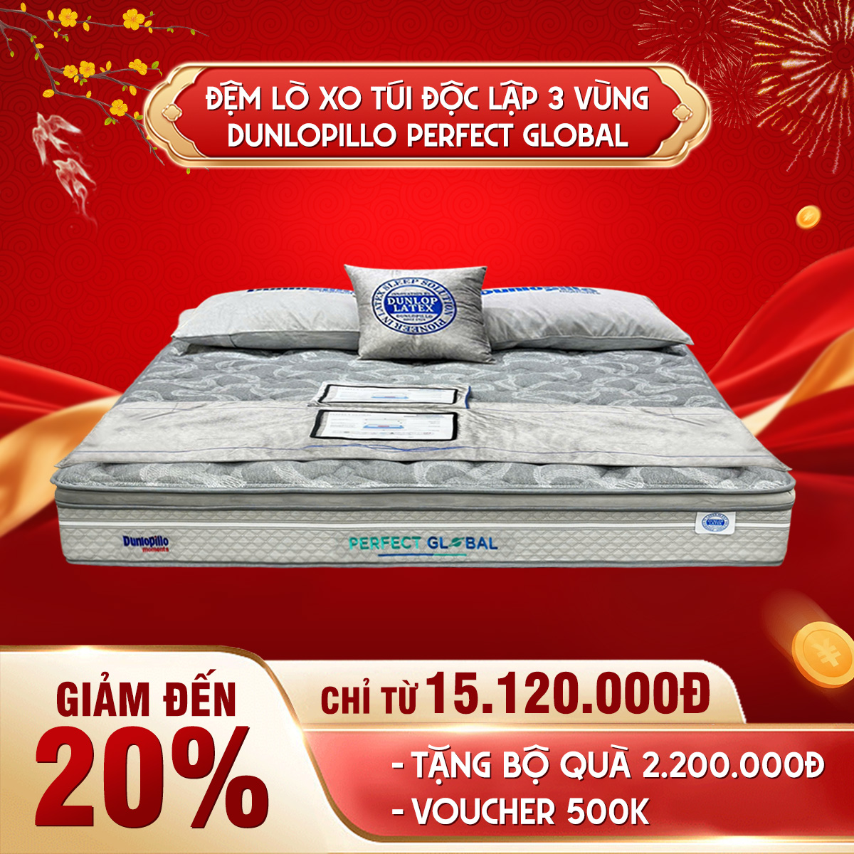 Đệm lò xo túi độc lập 3 vùng Dunlopillo Perfect Global