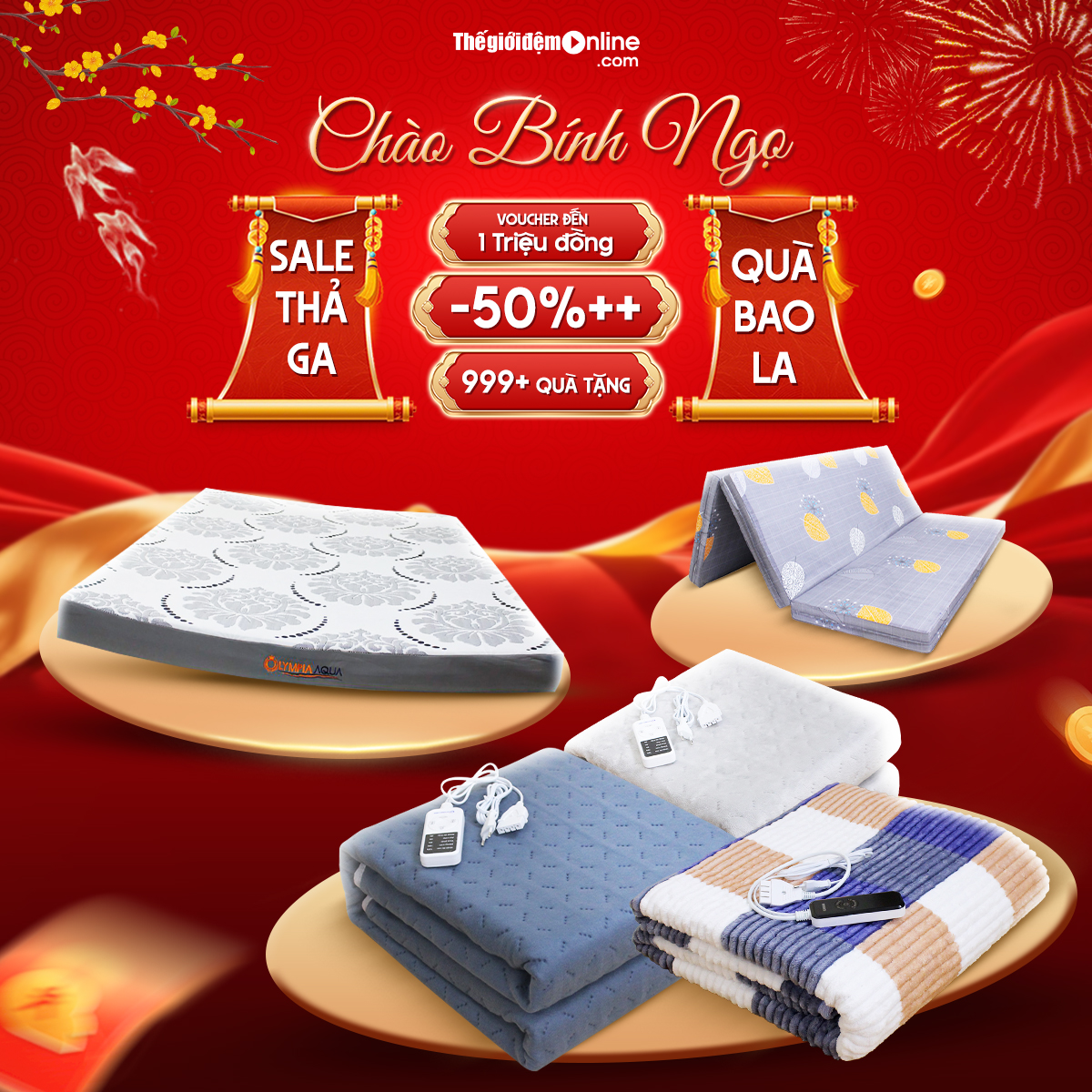 Tết đến Sale hết - Toàn bộ chăn ga gối đệm, đệm điện giảm đến 50%  - Ưu đãi chưa từng có tại Thế Giới Đệm Online :