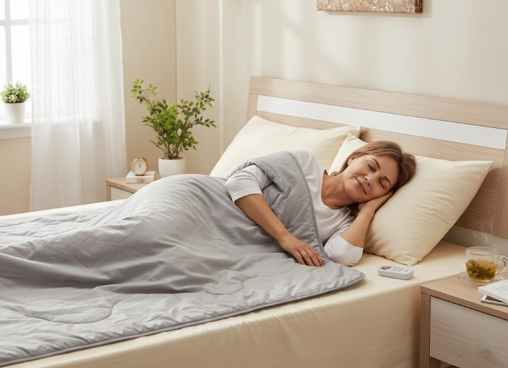 Chăn đệm điện tạo ra hơi ấm ổn định, giúp giãn nở các mạch máu, hỗ trợ lưu thông khí huyết. Đối với người cao tuổi tại Nam Định thường xuyên bị đau nhức xương khớp hay người trẻ gặp áp lực công việc, hơi ấm dịu nhẹ này giúp xoa dịu các bó cơ, đưa cơ thể vào giấc ngủ sâu và ngon hơn, tránh tình trạng tỉnh giấc giữa đêm vì lạnh chân tay.