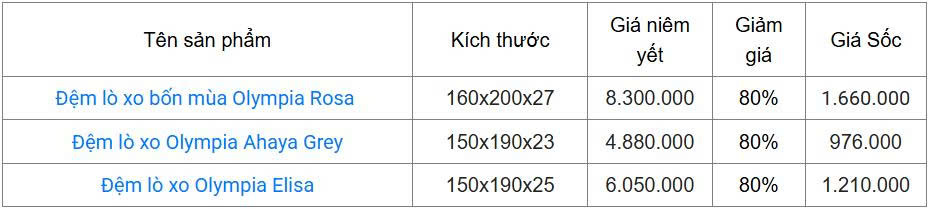 Kich thước 160x200x27 giá 8.300.000 giảm còn 1.660.000